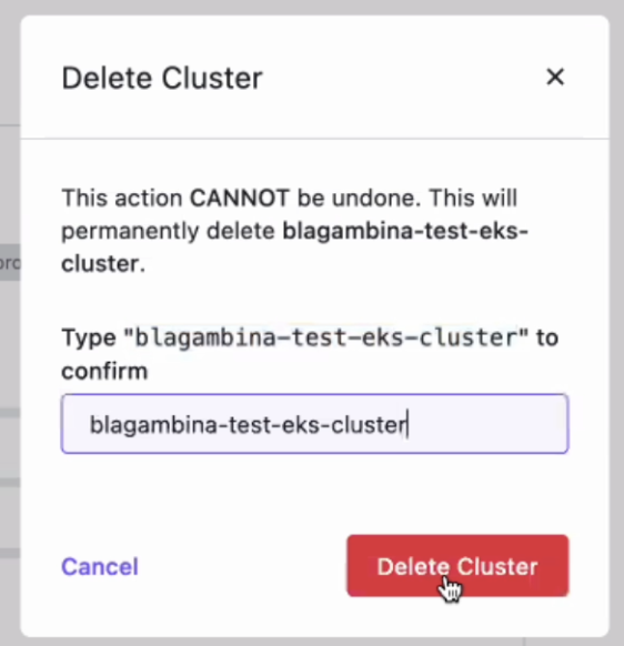 4. When the next screen appears, copy the name of your cluster and paste it into the empty box.